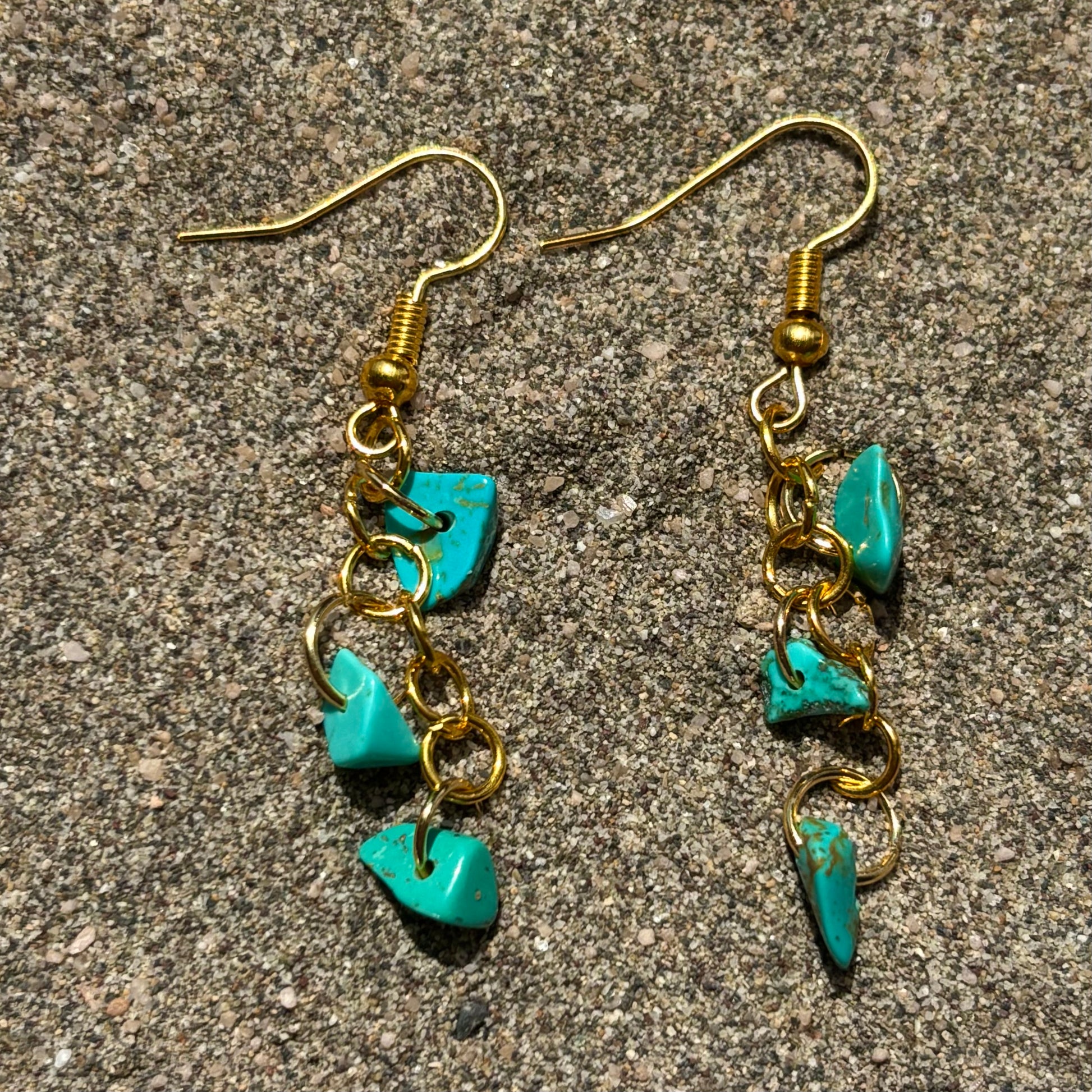 Une chute de perles turquoises suspendue à une chaîne dorée, comme des gouttes d’eau scintillantes sous le soleil. Inspirées des criques secrètes de la Méditerranée, ces boucles sont assemblées à la main avec des pierres soigneusement sélectionnées.