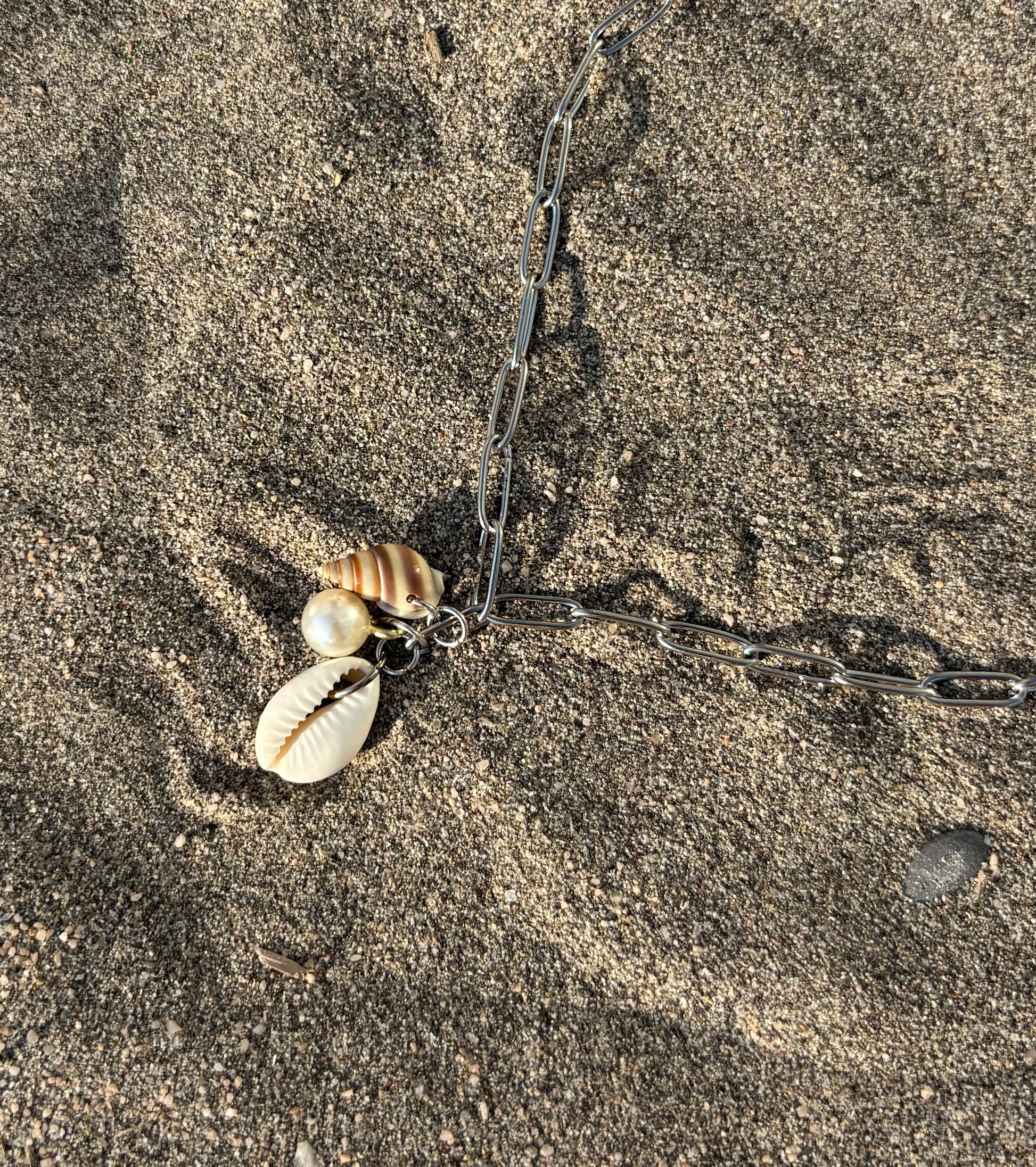 Entre éclats d’argent, coquillages naturels et pierre blanche lumineuse, ce collier capture l’essence pure de la mer. Il évoque les rivages paisibles, les galets polis par les vagues et la lumière douce des fins d’après-midi d’été. Subtil et poétique, il se porte comme un talisman, une ode à la nature et à la sérénité. Parfait pour illuminer une peau dorée ou apporter une touche fraîche et minérale à vos looks.