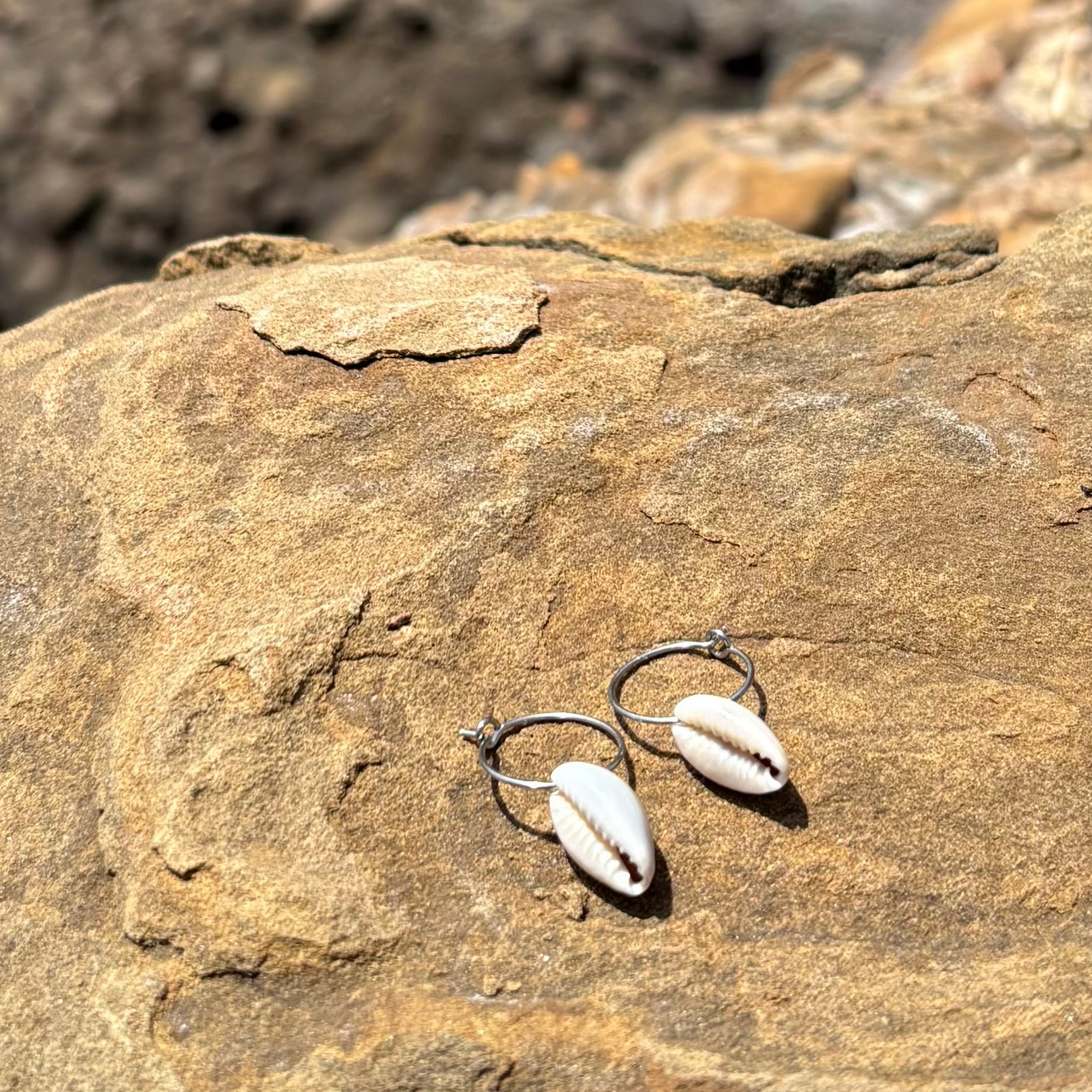 Simples et sauvages, ces boucles subliment la beauté brute de l’océan. Chaque créole argentée accueille un véritable coquillage cauri, ramassé à la main et percé avec soin, pour une allure naturelle et libre.